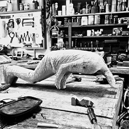 Desde 2012 vivo y trabajo en mi casa-taller en la Ribera de Quilmes, frente al río. Ese entorno natural, a veces calmo, a veces feroz, se volvió parte de mi obra. Trabajo con materiales como la madera, el fuego, la tinta y el carbón. Me interesa lo que vibra antes de decirse, lo que el gesto revela sin nombrar. A través de formas arquetípicas y de la figura humana, intento dar cuerpo a tensiones vitales: instinto y razón, caos y orden, impulso y límite.