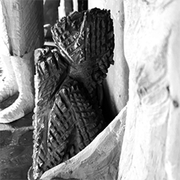 Desde 2012 vivo y trabajo en mi casa-taller en la Ribera de Quilmes, frente al río. Ese entorno natural, a veces calmo, a veces feroz, se volvió parte de mi obra. Trabajo con materiales como la madera, el fuego, la tinta y el carbón. Me interesa lo que vibra antes de decirse, lo que el gesto revela sin nombrar. A través de formas arquetípicas y de la figura humana, intento dar cuerpo a tensiones vitales: instinto y razón, caos y orden, impulso y límite.